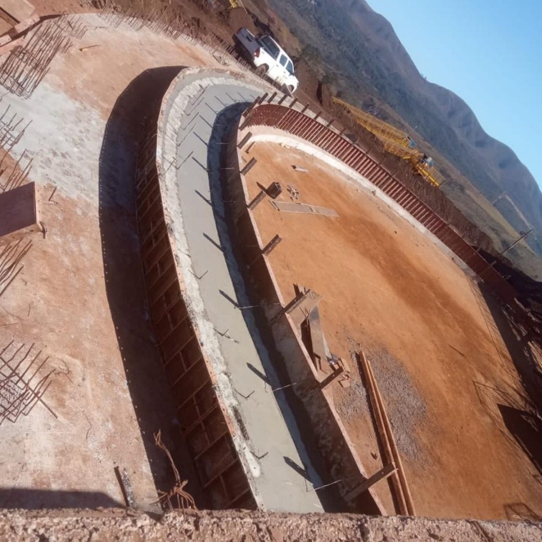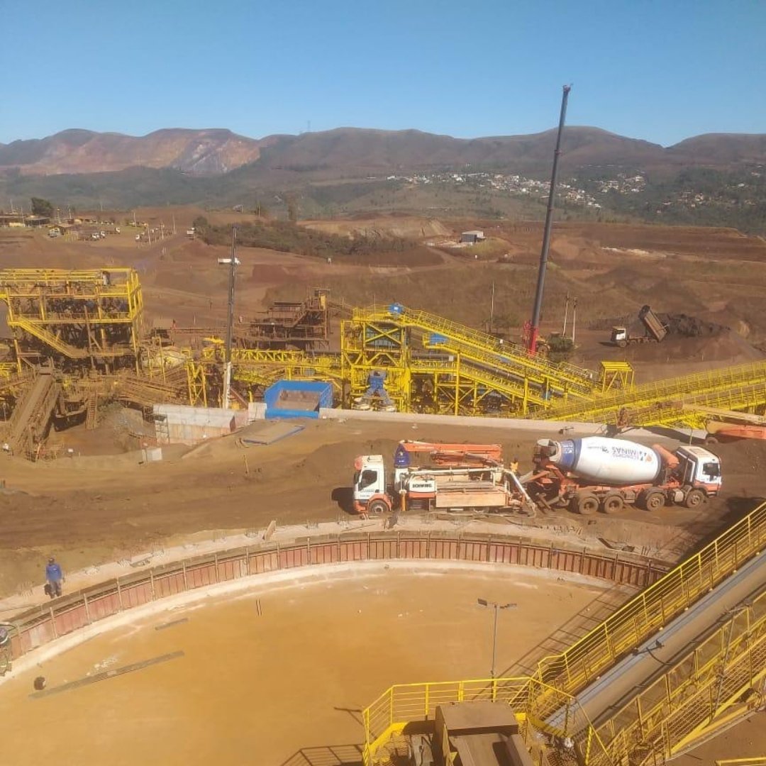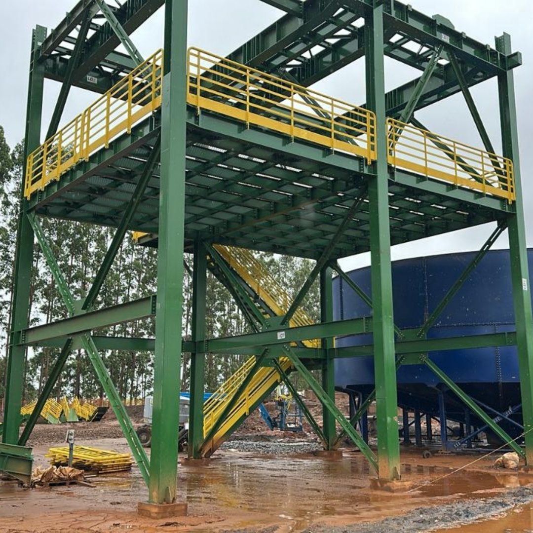 Base de Sustentação para Estrutura Metálica. Execução de fundações e base estrutural em concreto armado destinada à sustentação de estrutura metálica industrial de grande porte no setor de processamento mineral, garantindo estabilidade, resistência mecânica e desempenho compatível com as exigências operacionais do ambiente industrial.